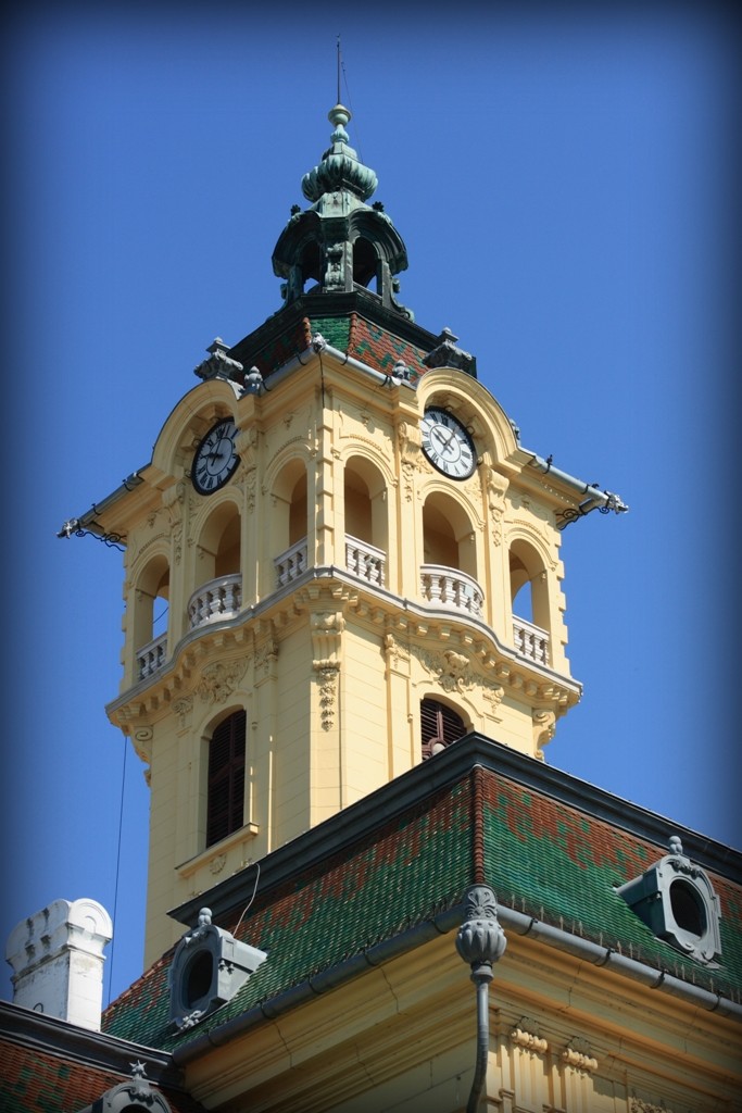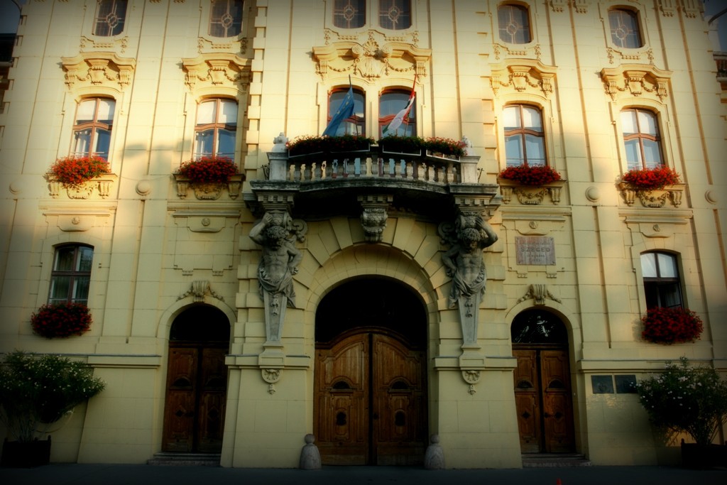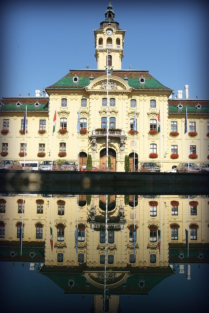 Das heutige Rathaus ist das dritte Gebäude auf dem gleichen Platz und mit gleicher Funktion. Das erste, einfache Rathaus wurde 1728 gebaut, das zweite hat man am Ende des 18. Jh. schon mit dem jetzigen Grundriss errichtet. Nach der Überschwemmung 1879 wurde der Platz aufgeschüttet, so erschien das Gebäude zu niedrig und schwerfällig. Ödön Lechner und Gyula Pártos planten ein neues Stockwerk und einen zentralen Turm auf die alten Mauern. Das Rathaus im Neobarockstil wurde 1883 von Franz Josef I. eröffnet, das Mittelfenster im Treppenhaus bewahrt die berühmte Aussage des Königs: „Szeged wird schöner sein, als je zuvor”. Der Phönix-Vogel an der Fassade erinnert an die Wiedergeburt der Stadt nach der Hochwasserkatastrophe. Beachtenswert ist auch die Seufzerbrücke, die ursprünglich für den König und seine Begleitung errichtet wurde.