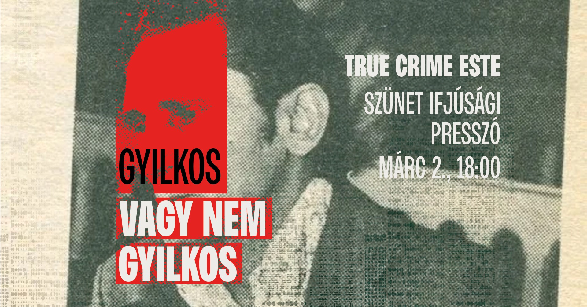 A Gyilkos, vagy nem gyilkos? című előadásunk középpontjában egy évtizedek óta nyugtalanító és megoldatlan bűnügy lesz, a Szolnoki gyermekgyilkosság esete.