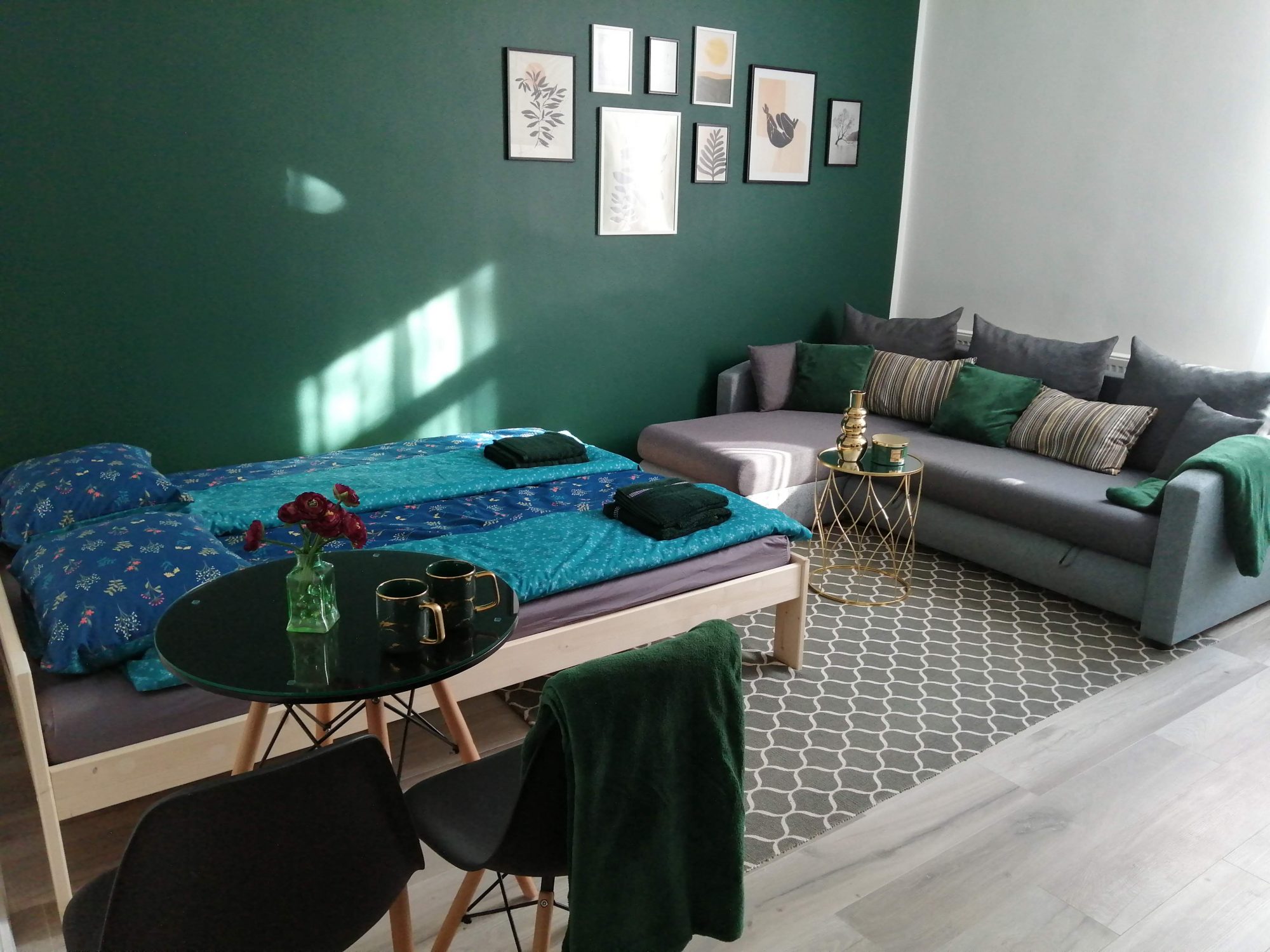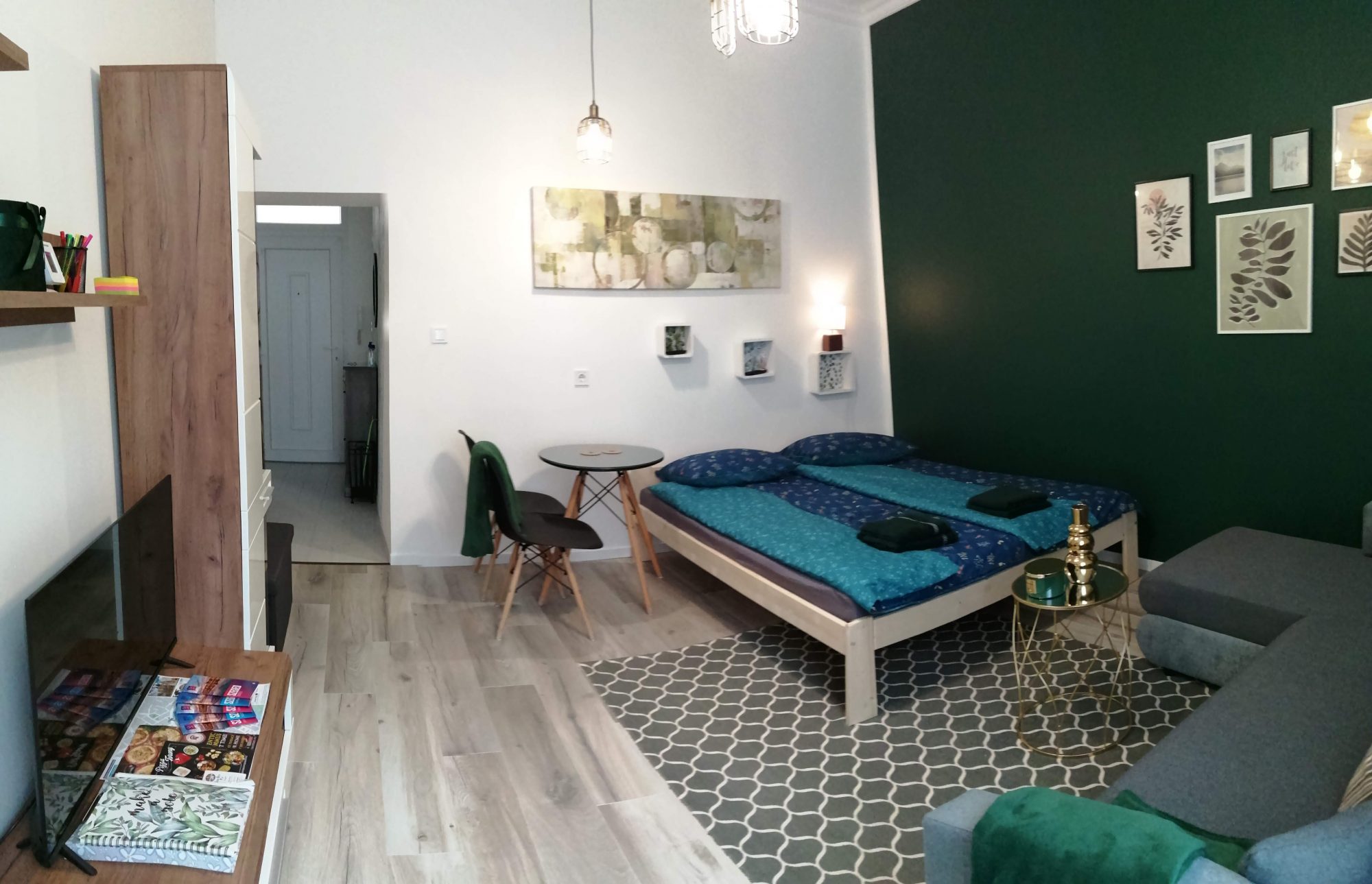 Besplatan parking, besplatan vifi, HBO MAKS usluga, društvene igre, dobro opremljena kuhinja, posuđe (mineralna voda, grickalice, toaletni pribor, kafa, čaj). Besplatni skuteri za goste koji vole da vežbaju. Apartman na prvom spratu ima 28 kvadratnih metara i može da primi do četiri osobe. Jedan bračni krevet i jedan kauč na razvlačenje. Stanu se može pristupiti samostalno.