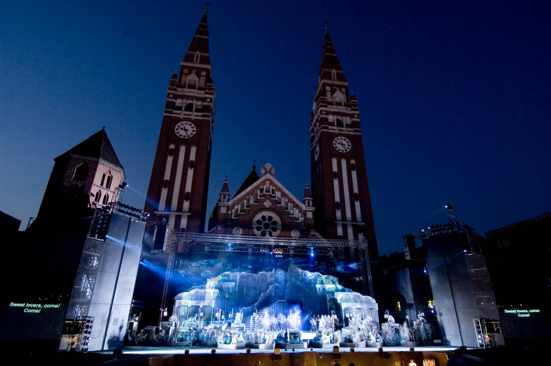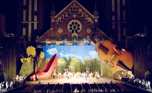 Prva predstava – Mađarska pasija – izvedena je 13. juna 1931. godine. Nakon toga, letnje predstave na otvorenom postale su glavna atrakcija Segedina svakog leta i uživale su neprekidan uspeh. Ovu uspešnu seriju prekinuo je Drugi svetski rat – posle leta 1939. trg je na dvadeset godina utihnuo.
